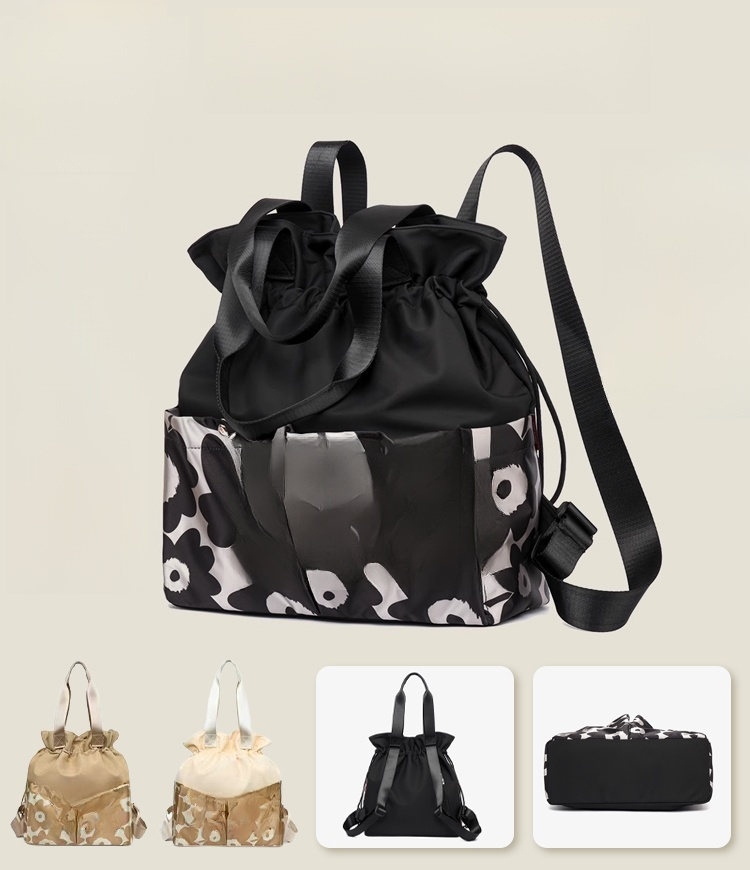 [Can be carried on both shoulders or on the back] Large-capacity Oxford cloth floral travel bag